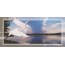 Carte postale panoramique d'un héron prenant son envol en bordure de rivière. Format 10,5 cm x 23 cm - vendue avec enveloppe.
