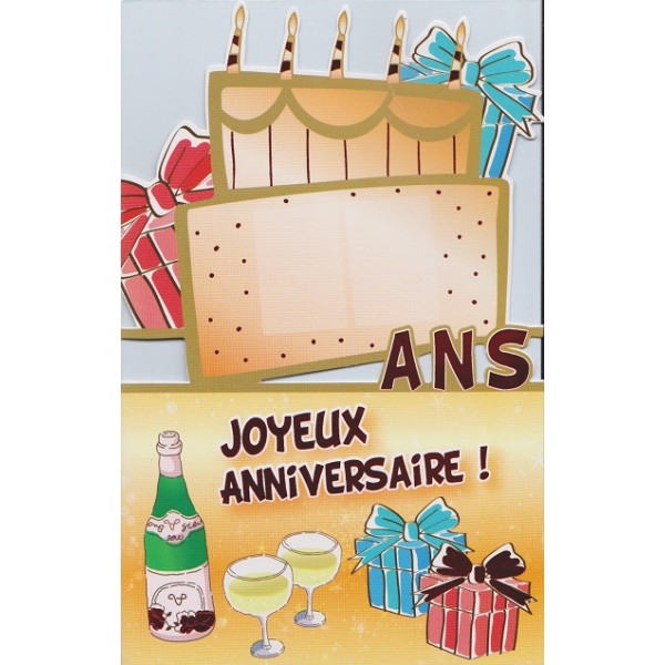 Souhaitez l'anniversaire de vos proches ou amis avec une belle carte d'anniversaire sur laquelle vous inscrirez l'âge du destinataire et offrez lui vos voeux les plus sincères pour cette année de plus et plein de bonheur pour les années qui suivent. Cartes avec gâteaux et bougies, cartes avec cadeaux ou cartes avec les accessoires pour marquer l'événement. Format 11,5 cm x 18 cm - Avec enveloppe assortie -