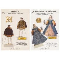 Voilà une façon amusante de faire connaissance avec les couples royaux de l'histoire de France en découpant leurs silhouettes sur ces cartes maquettes : ici Catherine de Médicis et Henri II. 12 cm x 17 cm