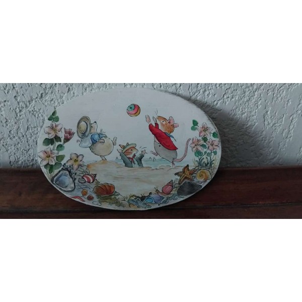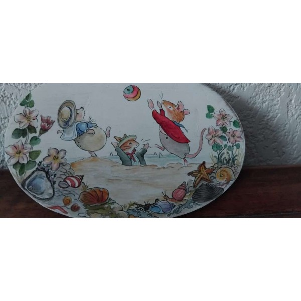 Plaque de porte décorative, entièrement réalisée à la main, pour chambres d'enfants, tout en douceur avec les sujets de Beatrix Potter. Partie de ballon sur la ^lage avec les amis de Pierre Lapin