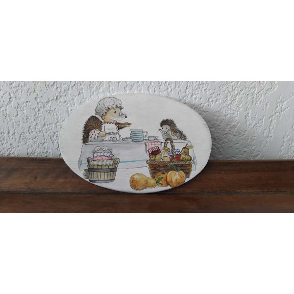 Plaque de porte décorative, entièrement réalisée à la main, pour chambres d'enfants, Maman Hérisson fait des confitures : petits animaux humanisés à la façon des personnages de Bearix Potter