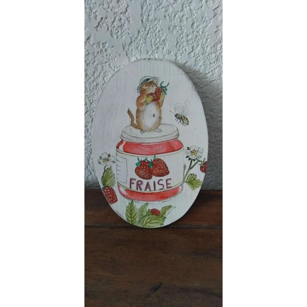 Plaque de porte décorative, entièrement dessinée et peinte à la main, pour déco intérieure, portes de chambres, cuisine.Petis animaux représentés comme les sujets de Beatrix Potter. Idée cadeau pour un enfant, une naissance ou un anniversaire. Déco intérieure. Plaque ovale, format longueur 14 cm, hauteur 10 cm Epaisseur 5 mm